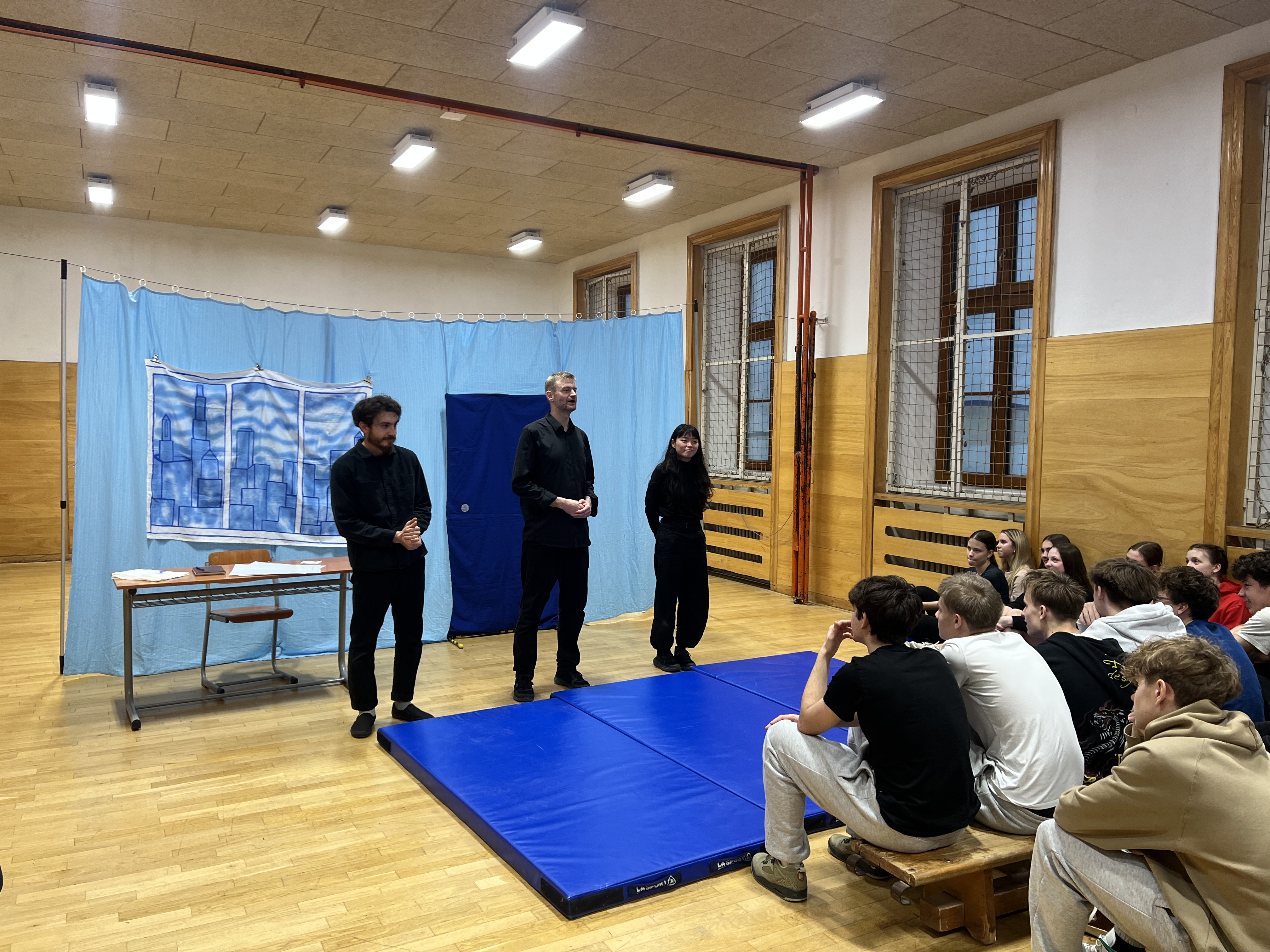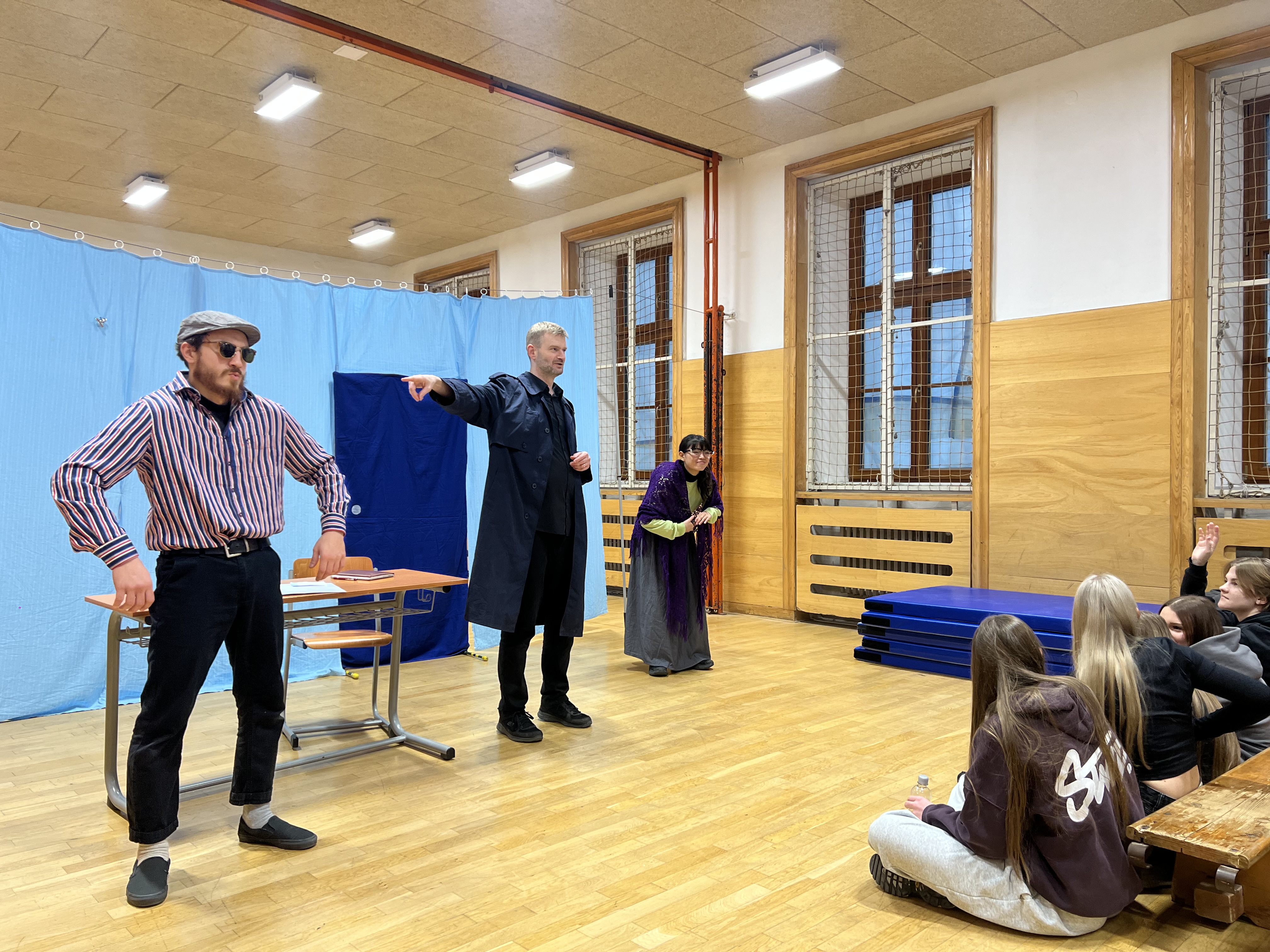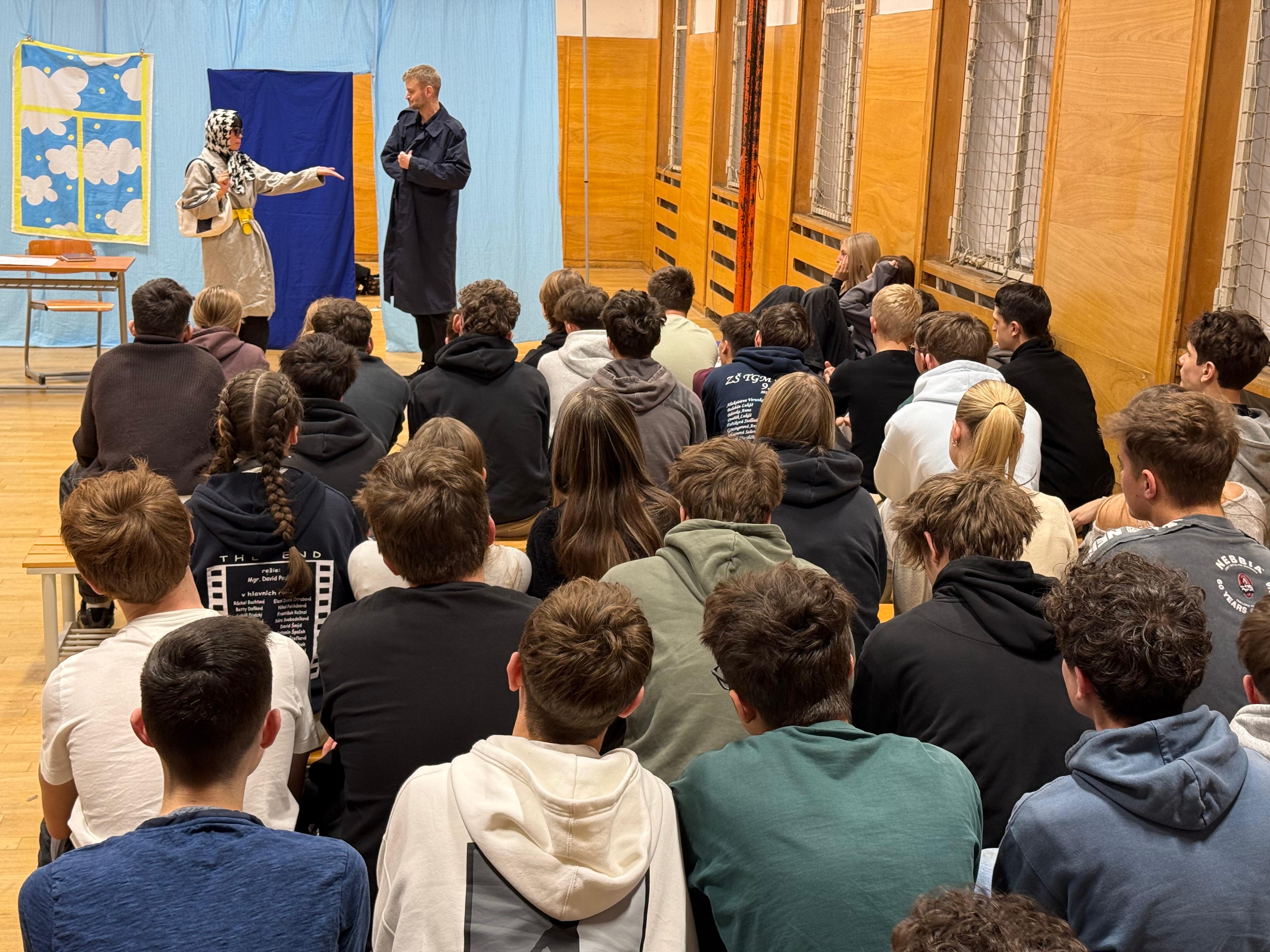 Ve středu 17. prosince 2025 se naše tělocvična na jedno dopoledne proměnila v divadelní sál, ve kterém se studenti prvních a druhých ročníků snažili spolu se soukromým detektivem zkusit přijít na to, kam se ztratil  student Andrew McStag. Na podnět jeho matky je vyhlášeno pátrání a z výpovědí Andrewova kamaráda, jeho bývalé přítelkyně, starší dámy i vyhazovače z klubu je záhada postupně vyřešena. Hra zobrazuje hledání identiy mladého člověka, který se vypořádává s tlakem rodiny a školy. Herci ze souboru ‚The Bear Educational Theatre‘, který jsme do naší školy pozvali už  poněkolikáté, dokázali studenty vtáhnout do děje a zajistili jim příjemný kulturní i jazykový zážitek v předvánočním týdnu.