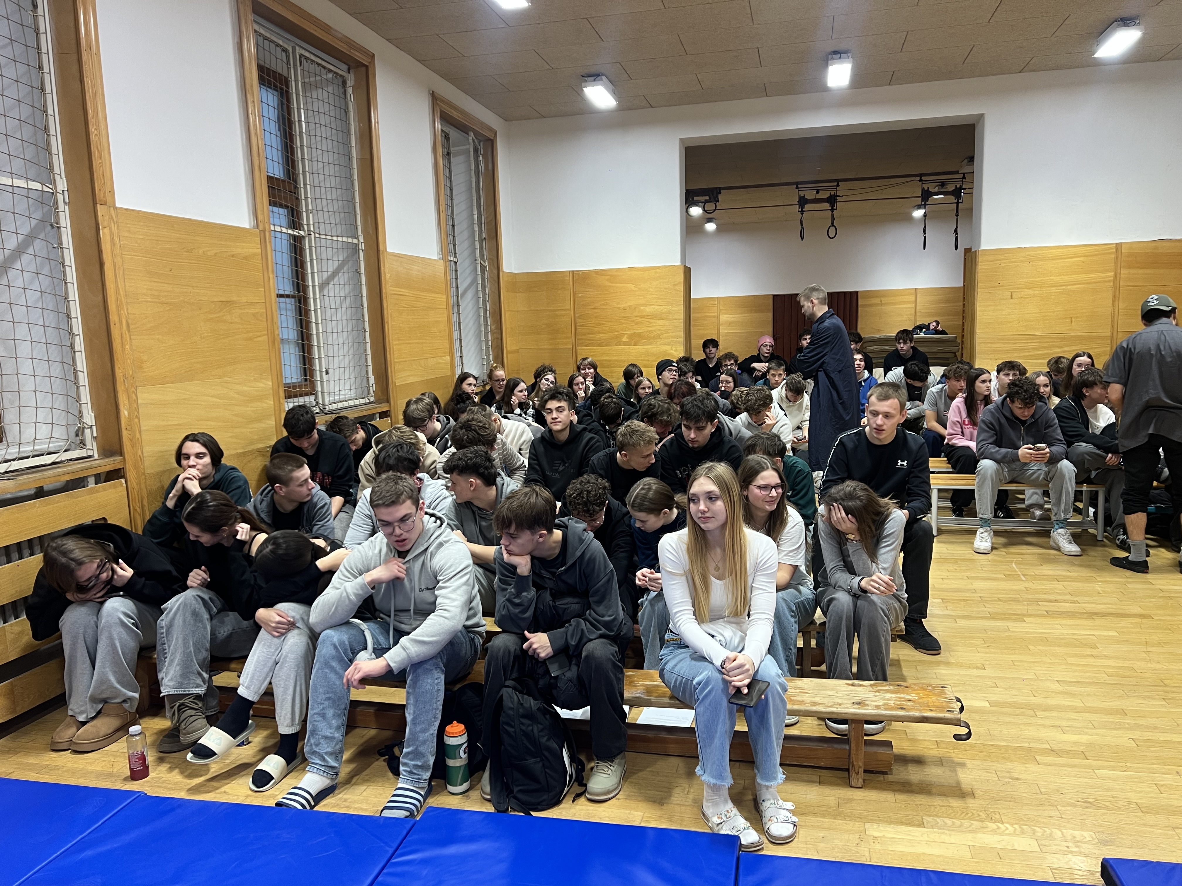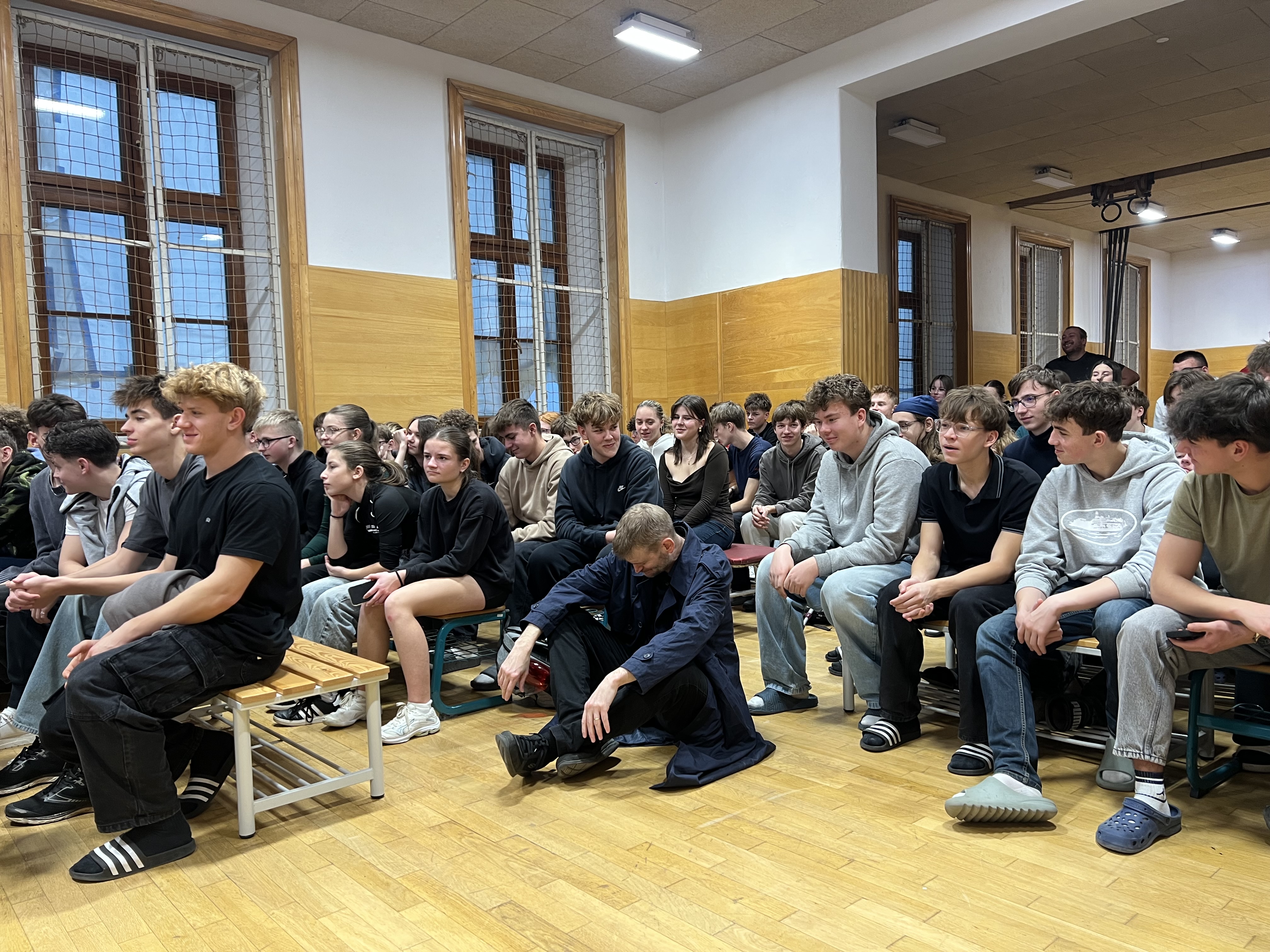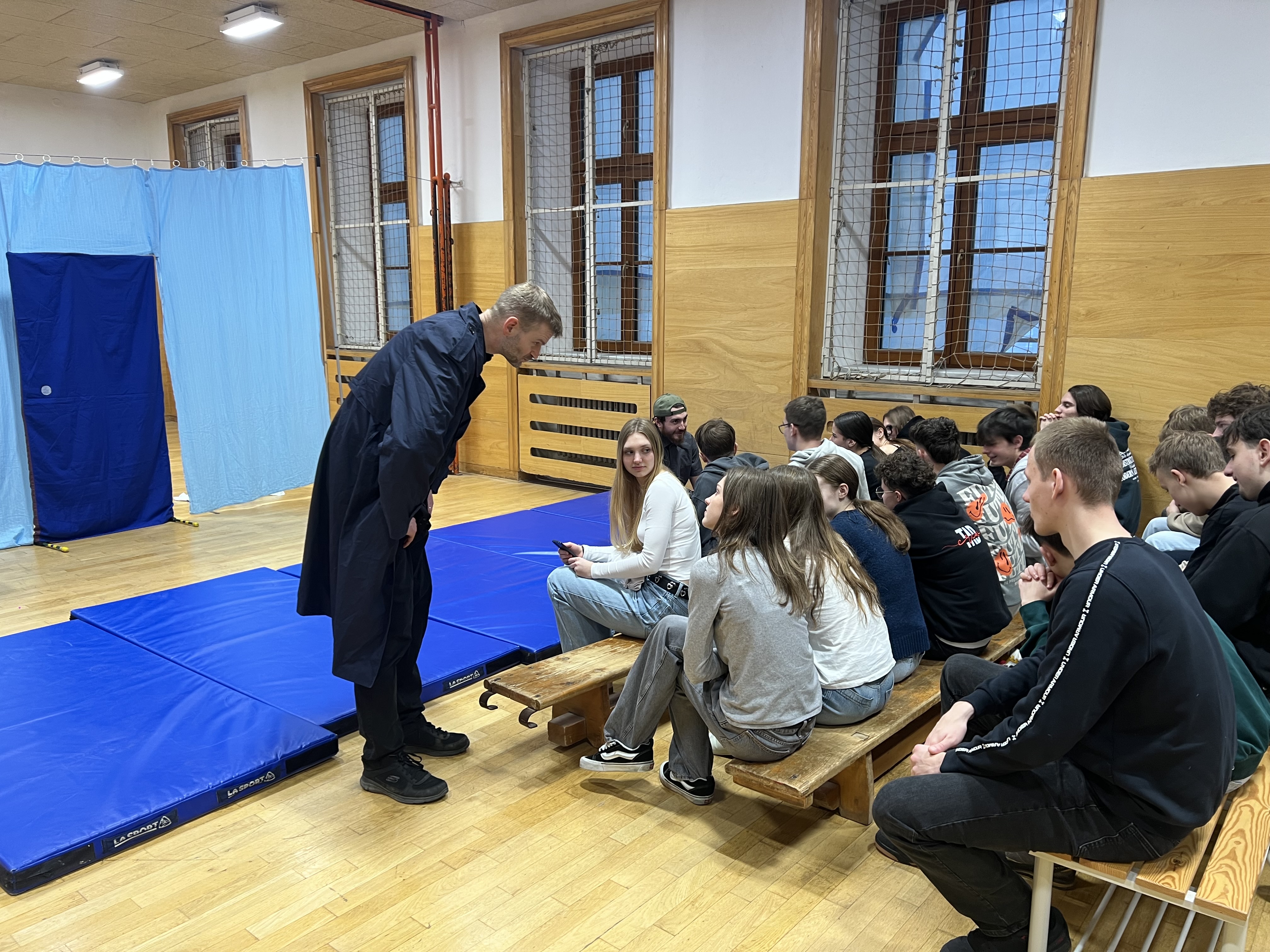 Ve středu 17. prosince 2025 se naše tělocvična na jedno dopoledne proměnila v divadelní sál, ve kterém se studenti prvních a druhých ročníků snažili spolu se soukromým detektivem zkusit přijít na to, kam se ztratil  student Andrew McStag. Na podnět jeho matky je vyhlášeno pátrání a z výpovědí Andrewova kamaráda, jeho bývalé přítelkyně, starší dámy i vyhazovače z klubu je záhada postupně vyřešena. Hra zobrazuje hledání identiy mladého člověka, který se vypořádává s tlakem rodiny a školy. Herci ze souboru ‚The Bear Educational Theatre‘, který jsme do naší školy pozvali už  poněkolikáté, dokázali studenty vtáhnout do děje a zajistili jim příjemný kulturní i jazykový zážitek v předvánočním týdnu.